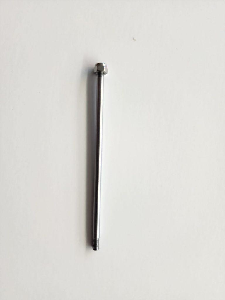 Install one front axle nut, (#22), rims, (#15), tire, (#16), and front axle spacer, (#13) on the front axle, (#14). Then slide that assembly through the front axle bearings installed in step #2. Then install the front axle spacer, rims, tire, and axle nut on the other end of the front axle. Using 5.5 MM nut drivers and/or pliers, adjust the front axle nuts so the front wheels turn freely, (DO NOT OVERTIGHTEN). There should be a small amount of endplay on the entire assembly when adjusted properly, and little or no resistance while rotating the front wheels. (see figure #3)
