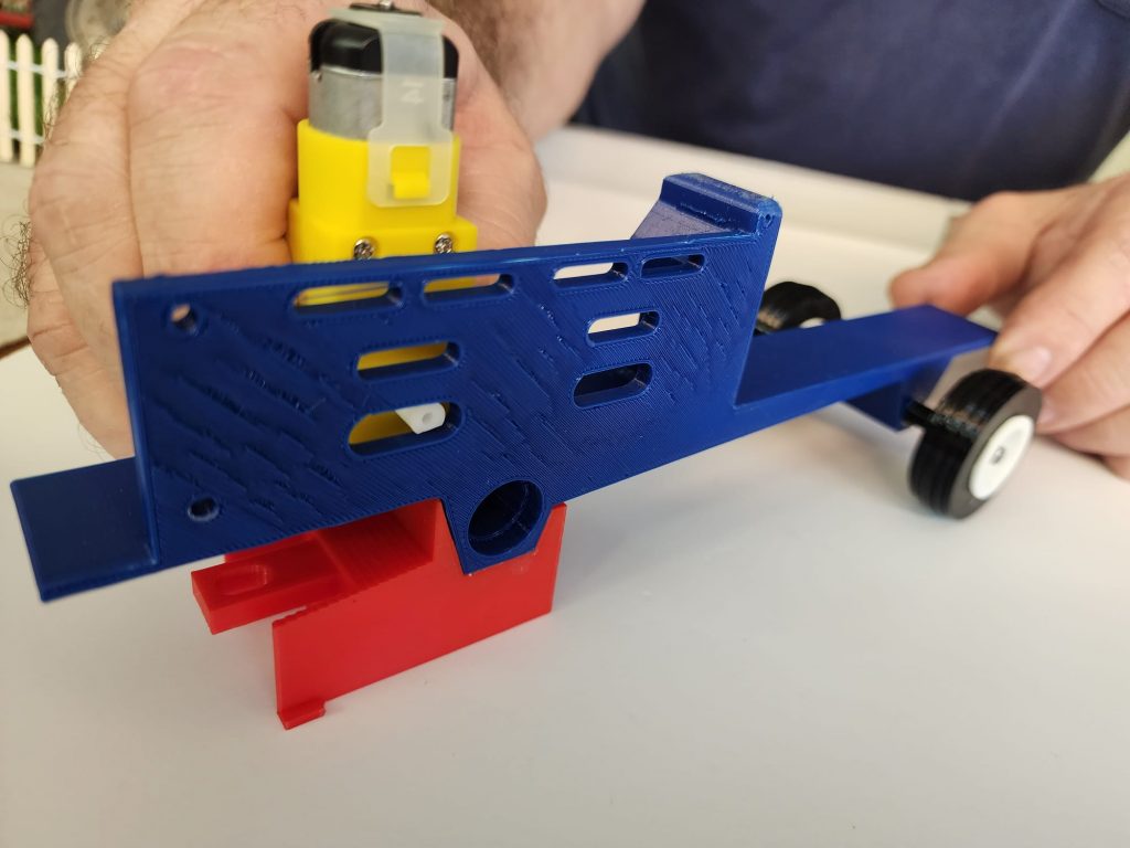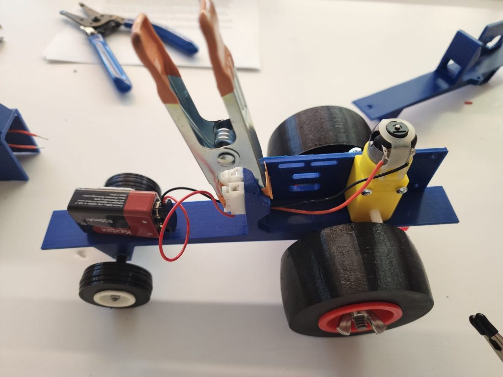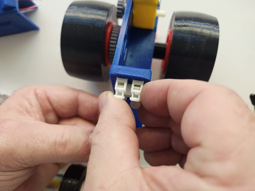 The tractors are powered by a 9-volt battery and a 90-degree gearmotor. RPMs can be different but between 110 and 200 RPM. You will also have the option to change gears easily, Kits are supplied with two pinion gears and 3 planetary gears, for 6 different speeds. You will have the option to “soup” your tractor up to 18 volts supply from standard 9 volts. This will double the RPM output of the motor.