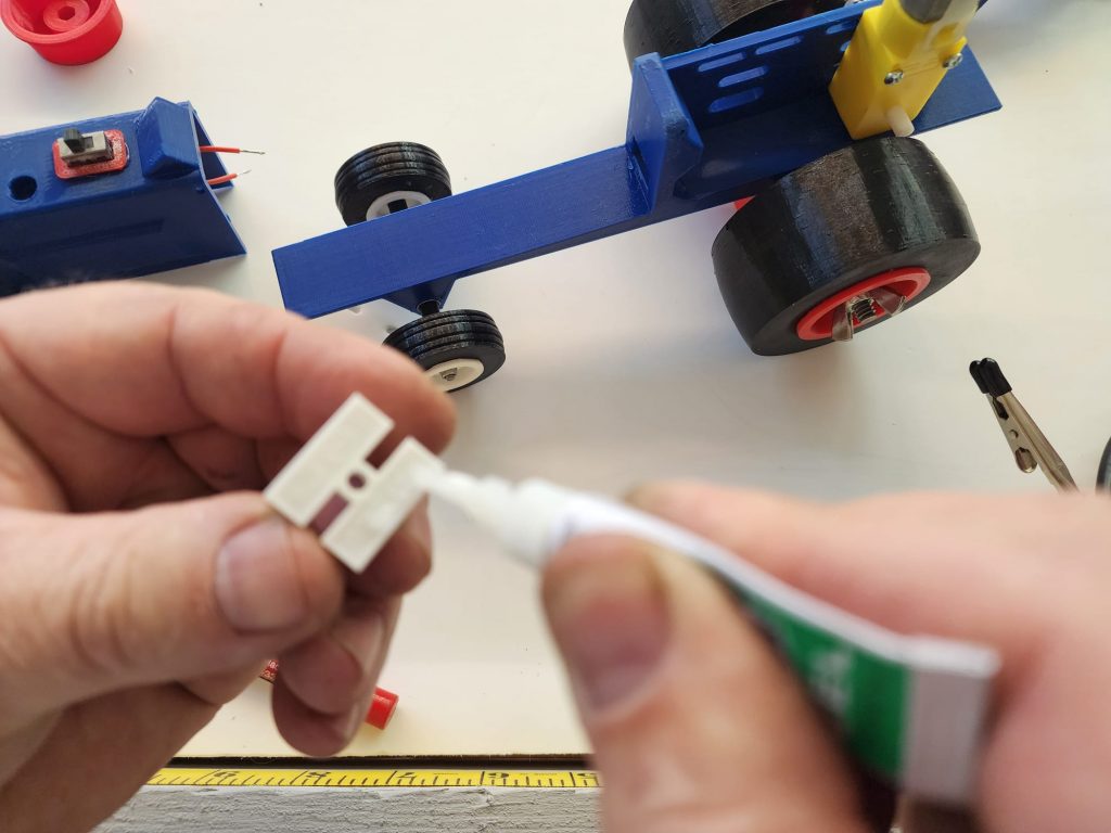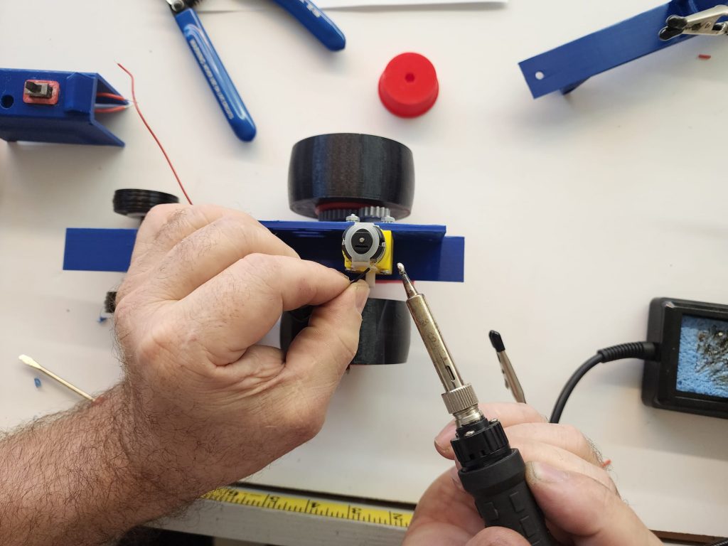 There will also be some soldering to be done on the motor terminals and the main switch. All the other connections are made in the terminal block you will glue to the front side of the dash panel under the hood or body.